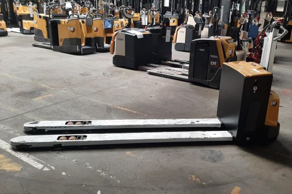 Le transpalette électrique accompagnant Cat® Lift Trucks NPP20N2 offre une productivité accrue grâce à son timon ergonomique, une construction de châssis robuste pour une durée de vie prolongée.